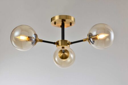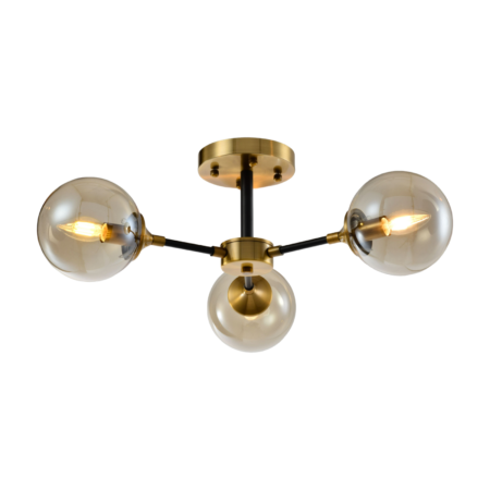 3 Arm Gold Bronze Semi Flush Amber Glass Chandelier CP215