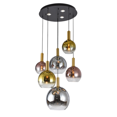 7 Light Clear Organic Glass Ball Gold Cluster Chandelier CP239