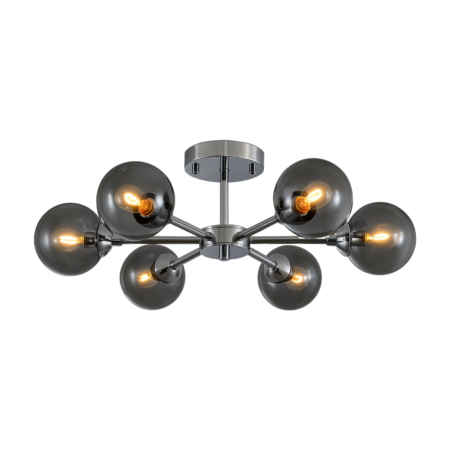 6 Arm Chrome Semi Flush Smoke Glass Chandelier CP212