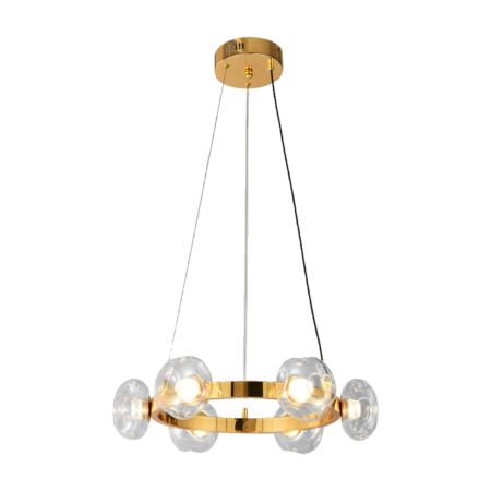6 Light Clear Organic Glass Hanging Gold Ring Chandelier CP235