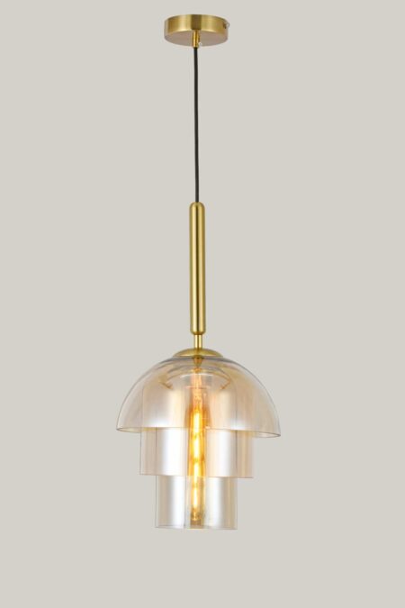 3 Layer Amber Dome Glass Brass Gold Pendant Lamp CP220