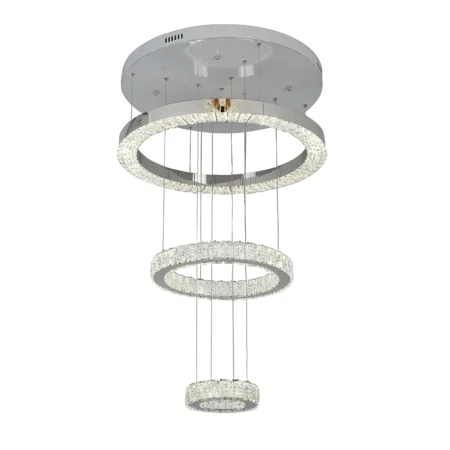 Hanging 3 tier square crystal chandelier ideal for high ceilings, a statement piece that can change into 3 different colour temperatures and with adjustable height.