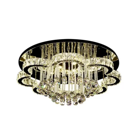 - Product Description - Wattage: 106W Size: Width: 60cm Height: 20cm Feature: LED 3 Colour changeable with remote control Material: K9 crystal and chrome finish