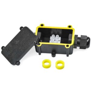 The 2-Way Waterproof IP68 Cable Connector consists of a high quality junction box. This Cable connector is also Waterproof, dustproof and flame retardant which prevents the start or growth of fire, hence making it safe. The cable connector is also durable and difficult to break. Used for outdoors, indoors and underground.