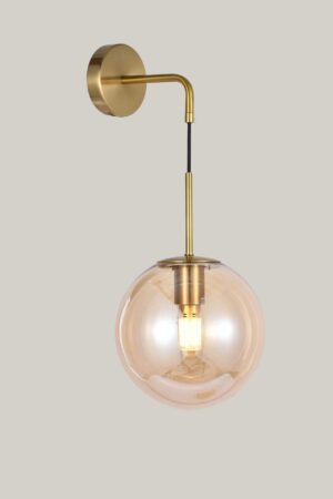 Elevate your interior decor with our Brass Gold Hanging Amber Glass Shade Wall Light. This elegant statement piece adds warmth and character to any room, making it an eye-catching feature that impresses guests and sparks conversation.
