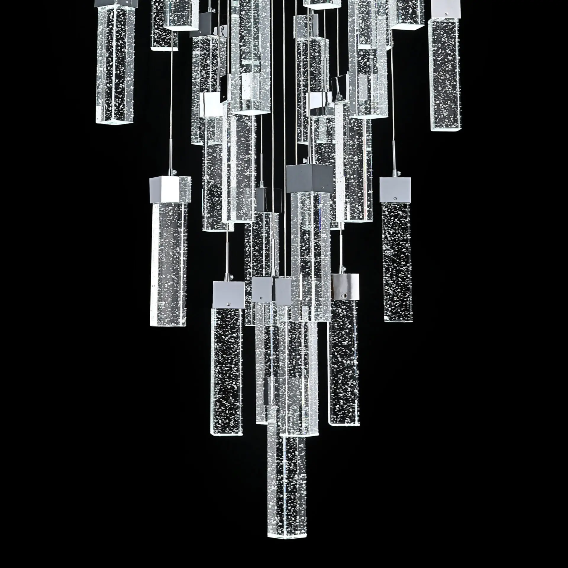 Elevate your space with our Modern Crystal Rectangle Bubble Cluster Chrome LED Chandelier. This stunning ceiling light adds a luxurious touch of glamour to your home or commercial setting, impressing your guests and visitors alike.