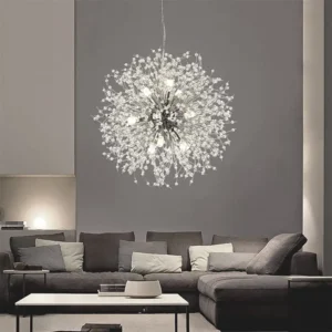 The Dandelion Pendant LED Light – Chrome features a sleek, contemporary design inspired by the delicate beauty of a dandelion. Its luxury silver finish and unique structure make it a captivating centerpiece for any room, adding a touch of sophistication and artistry to your décor.
