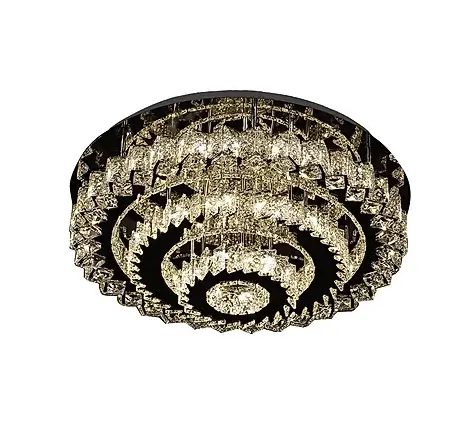 Flush 3 Layered Spiked Round Crystal Chandelier — Elegant Design, Adjustable Lighting