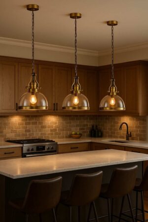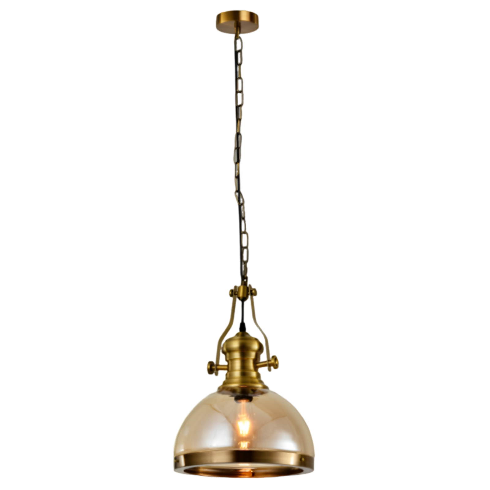Crafted from durable gold bronze iron paired with amber glass, this pendant showcases a refined industrial design built with quality craftsmanship. It’s energy-saving and perfect for illuminating indoor spaces such as living rooms, dining rooms, or hallways.