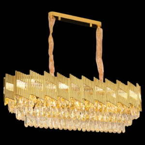Enhance your home with the elegant Gold Crystal Chandelier. This stylish ceiling light adds a touch of glamour and sophistication, making it a perfect centerpiece for living rooms, hallways, or any indoor space.