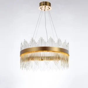 Add instant elegance to your home with the Luxury Brass Pendant Crystal Chandelier. As soon as guests enter, the dazzling K9 clear crystals and stylish brushed brass gold finish catch the light, creating a captivating centrepiece for any space. Because of its sleek pendant design, this chandelier fits beautifully in living rooms, hallways, or bedrooms, and always adds a touch of refined glamour.