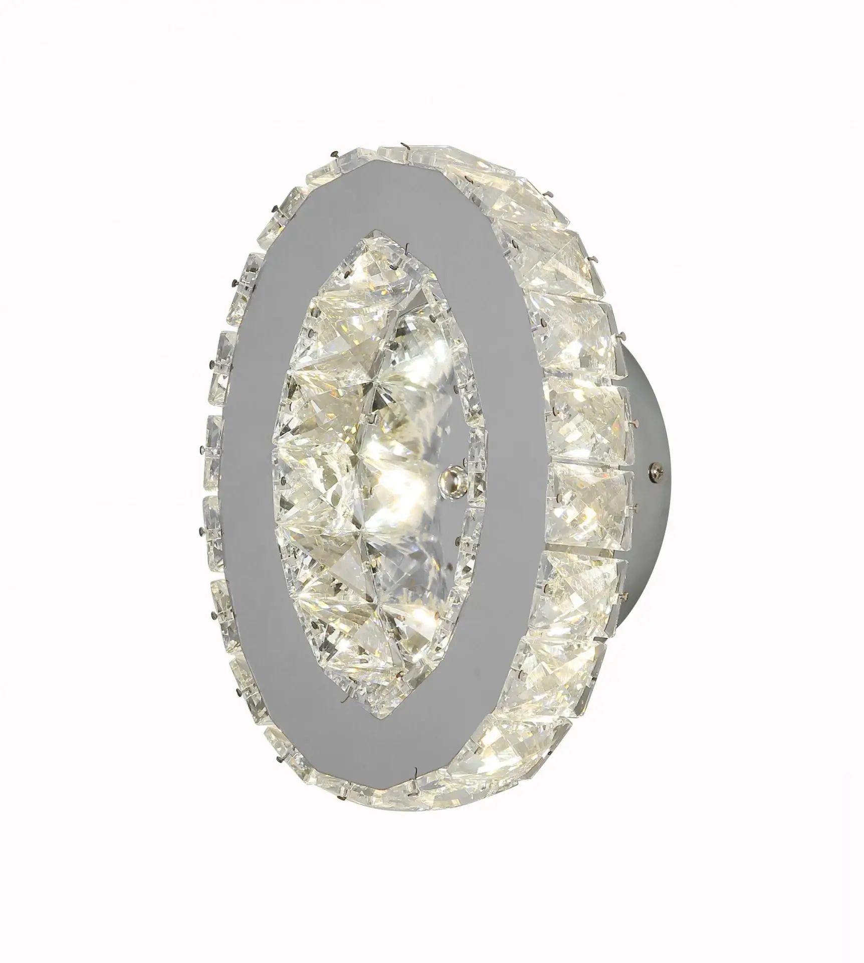 The Oval Crystal Wall Light adds instant elegance and modern style to your home. Its efficient LED gives you bright, beautiful light while saving on energy. With a luxury crystal finish and sleek design, this wall light is sure to impress your guests and create a relaxing, comfortable atmosphere in any room.