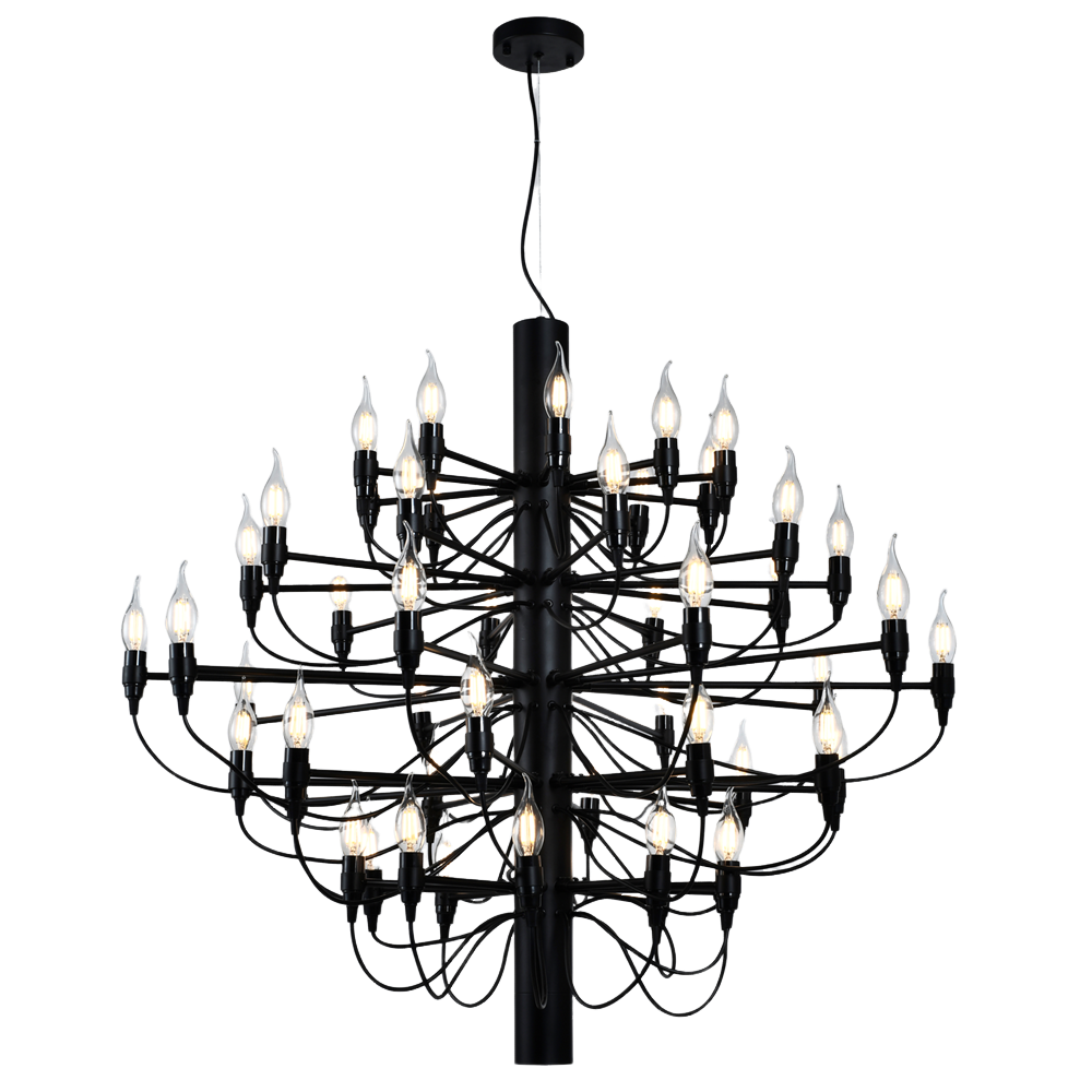 Crafted from high-quality iron and finished in either classic black or gold, the chandelier’s 50 arm structure casts beautiful ambient patterns, enhancing the atmosphere of any room it adorns.