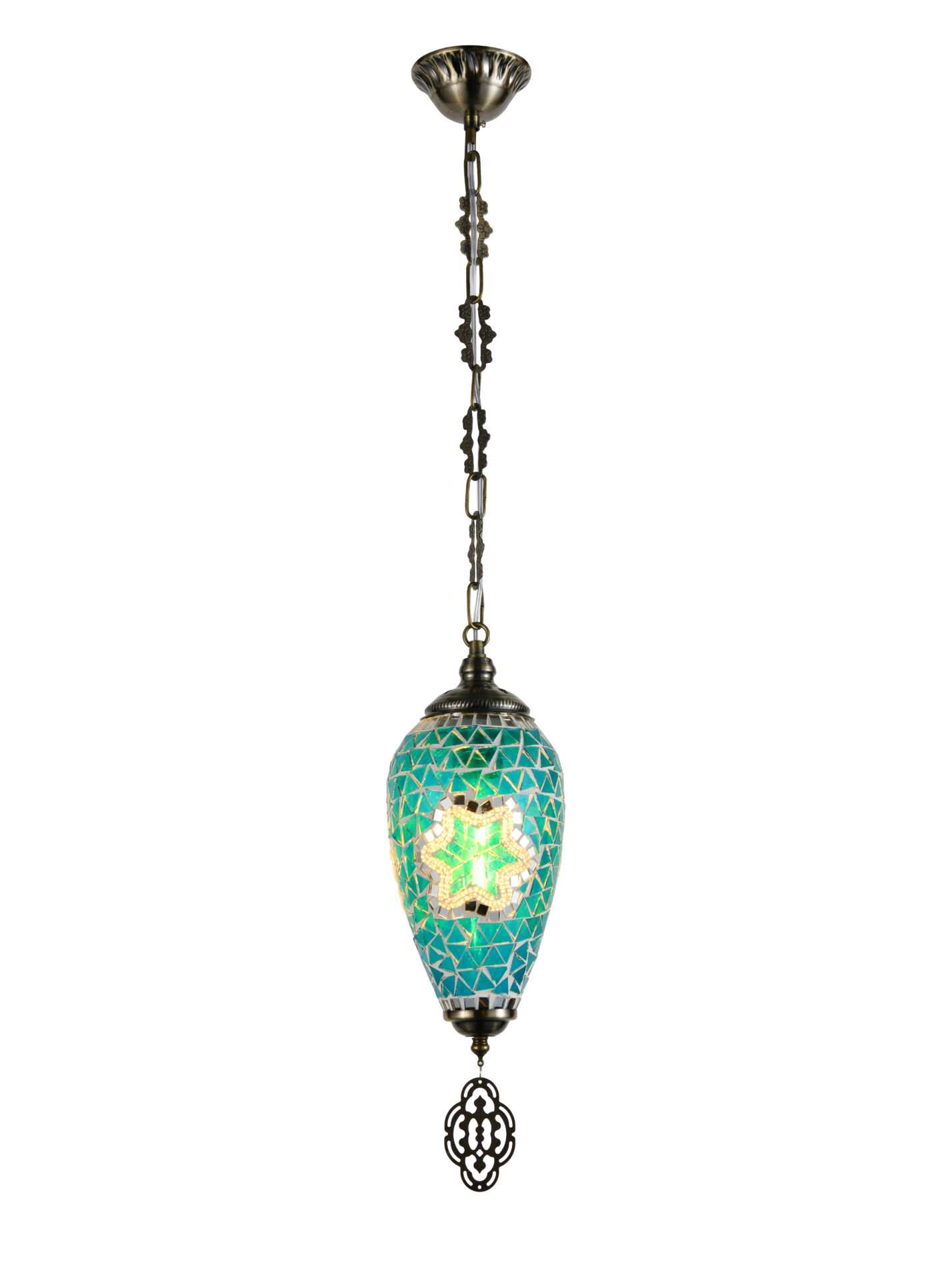 Turkish Moroccan Blue Flower Mosaic Tear Drop Pendant Light TUR007-D