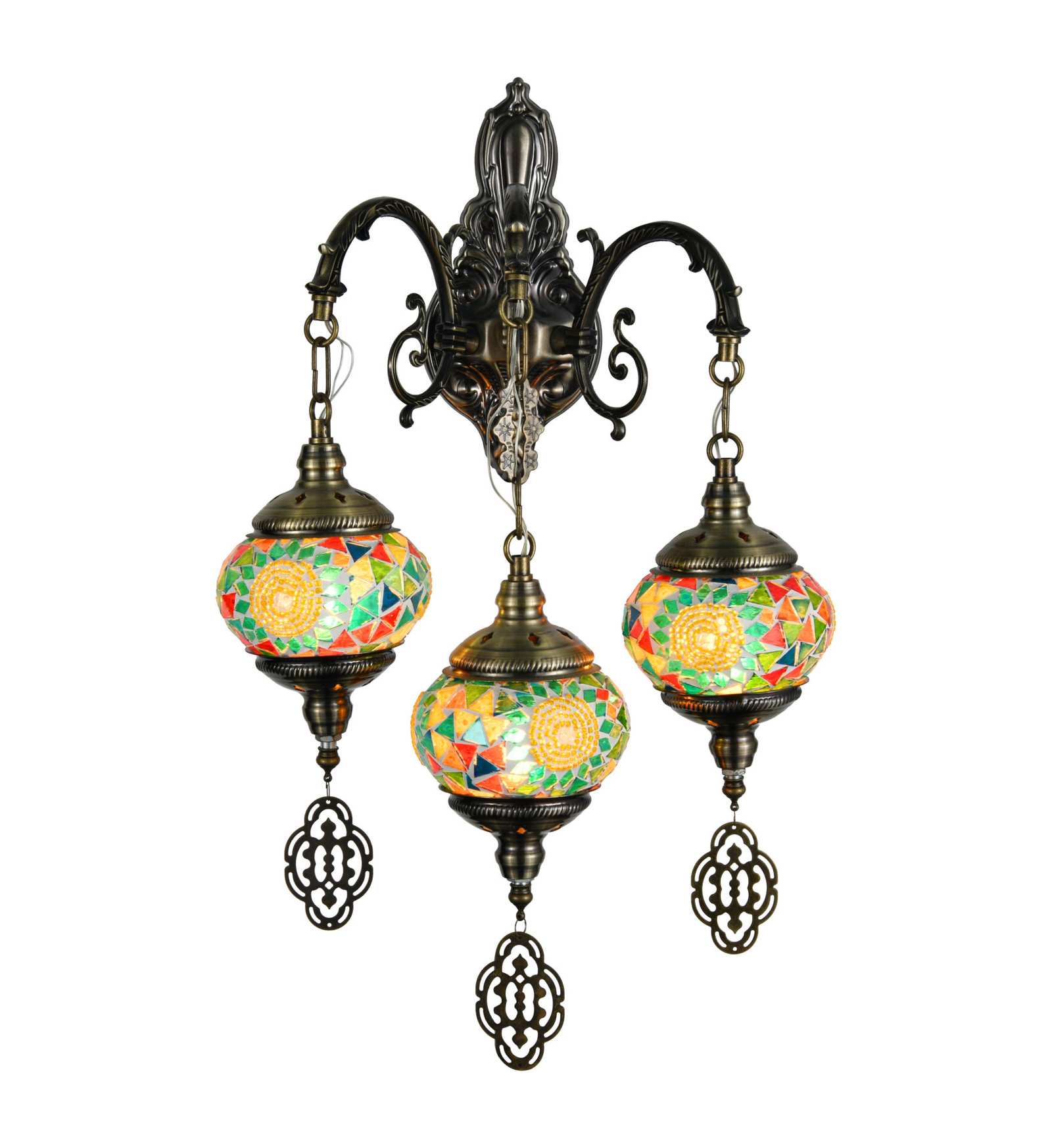 Turkish Moroccan Mosaic 3 Hanging Pendant Wall Light