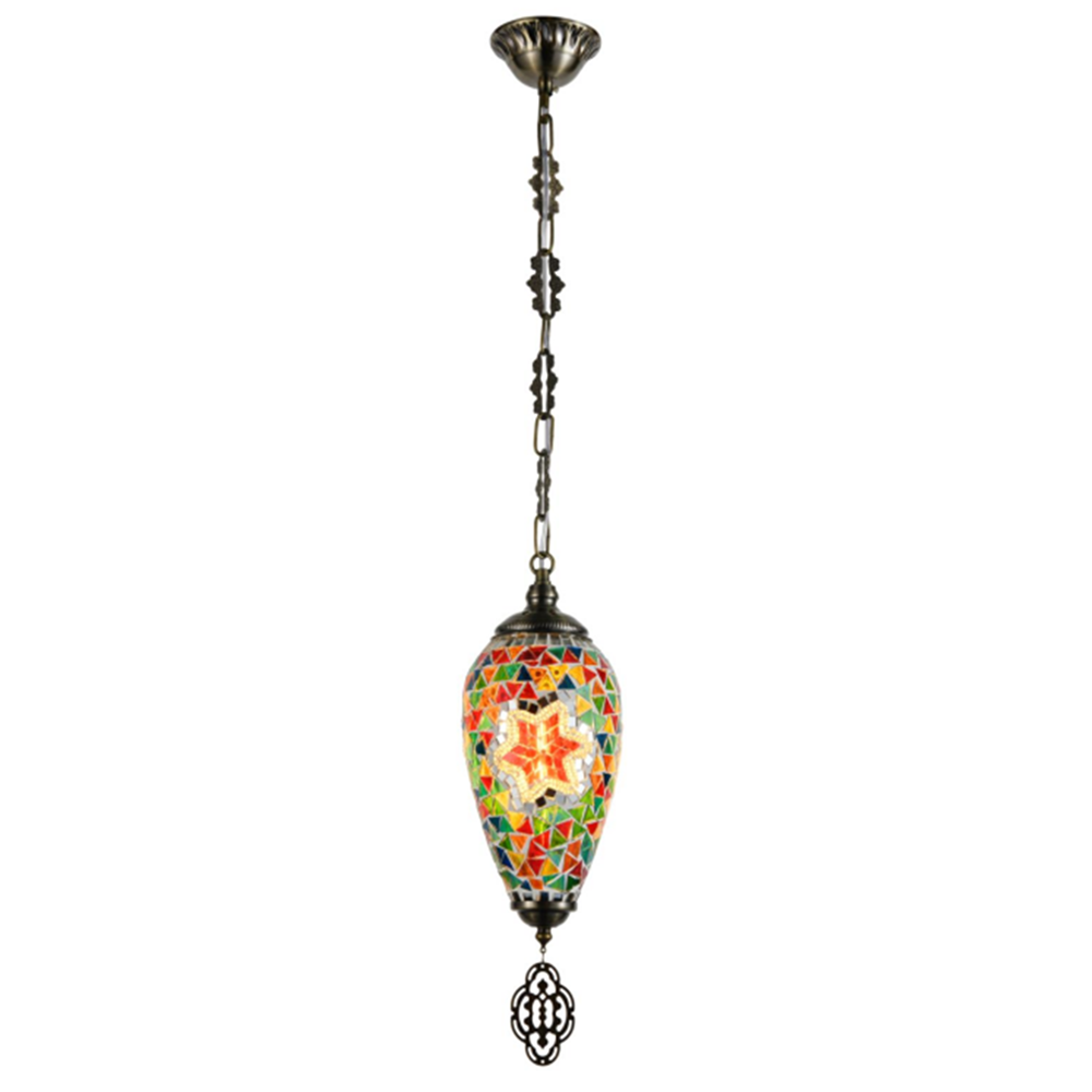 Turkish Moroccan Orange Flower Mosaic Tear Drop Pendant Light